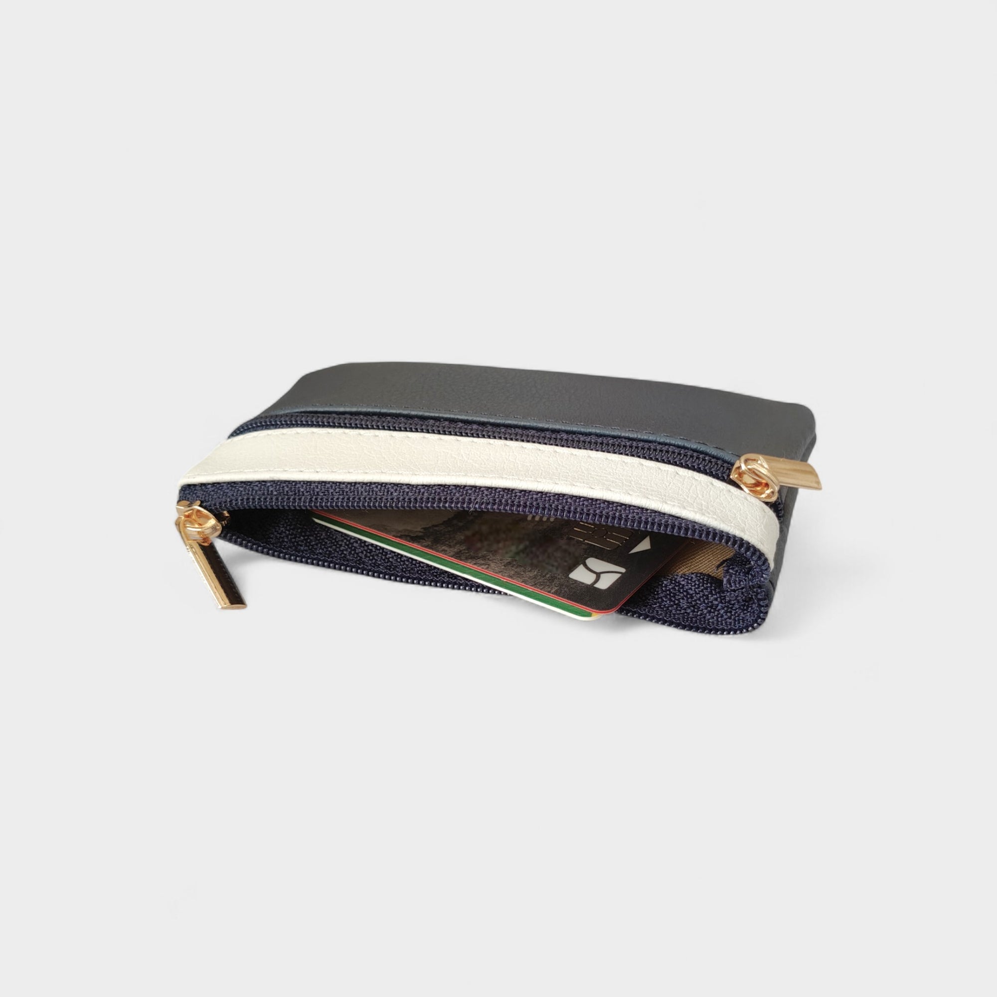 Porte-monnaie vegan en peau de pomme, marine et blanc